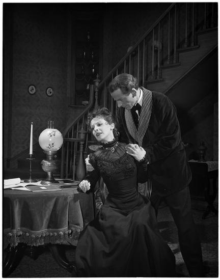 [Signe Hasso and Robert Harris in "Edwina Black".]