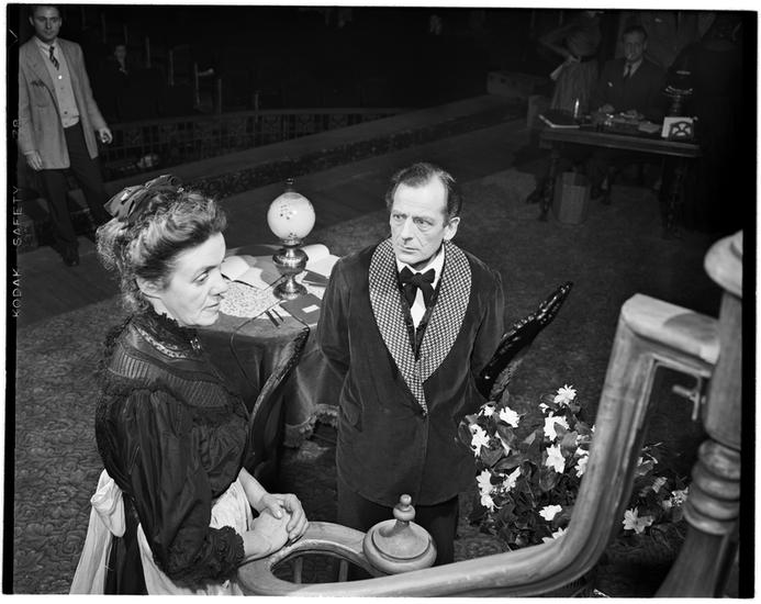 [Marjorie Rhodes and Michael Shepley in "Edwina Black".]