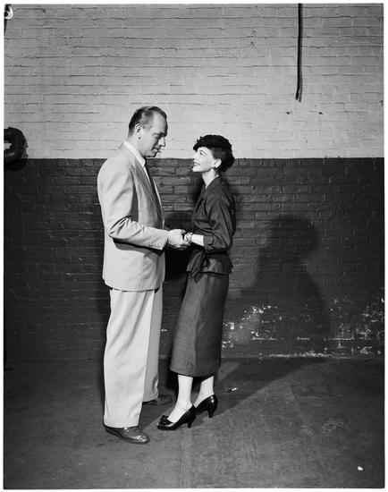 [Melvyn Douglas and Signe Hasso rehearsing for "Glad Tidings".]