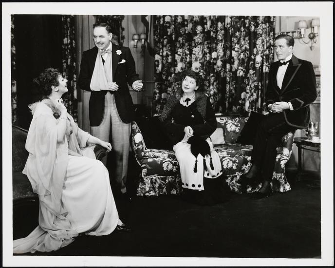 [Philip Tonge as Major Benjamin Flint, Isabel Jeans as Mrs. Emmeline Lucas (Lucia) and Viola Roache as Godiva Plaistow in "Make Way for Lucia".]