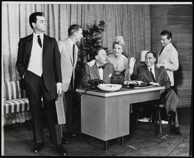 [Vivian Blaine as Irene Lovelle, David Wayne as Jack Jordan and Johnny Desmond as Rudy Lorraine in "Say, Darling".]