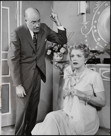 [Fred Clark as Hooper Moulsworth, Natalie Schafer as Beulah Moulsworth and William Greene as Freddie Vandestuyt in "Romanoff and Juliet".]