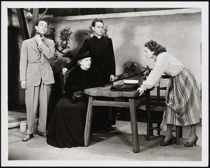 [Augusta Roeland as Franziska, Sanford Meisner as Bichler, Ethel Barrymore as Teta and Madeline Lee as Zdenka in "Embezzled Heaven".]