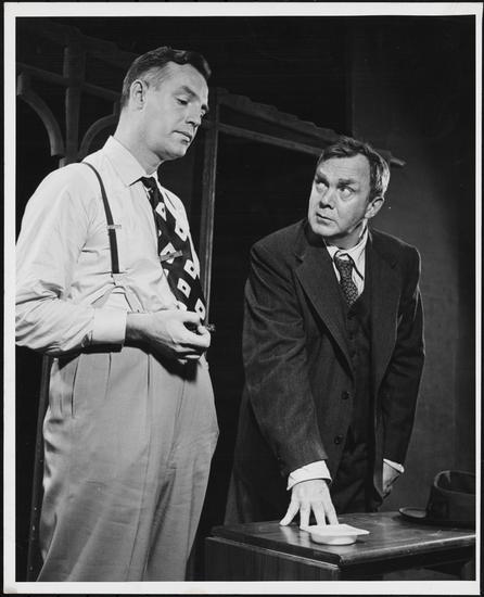 [Lee J. Cobb as Willy Loman and Alan Hewitt as Howard Wagner in "Death of a Salesman".]