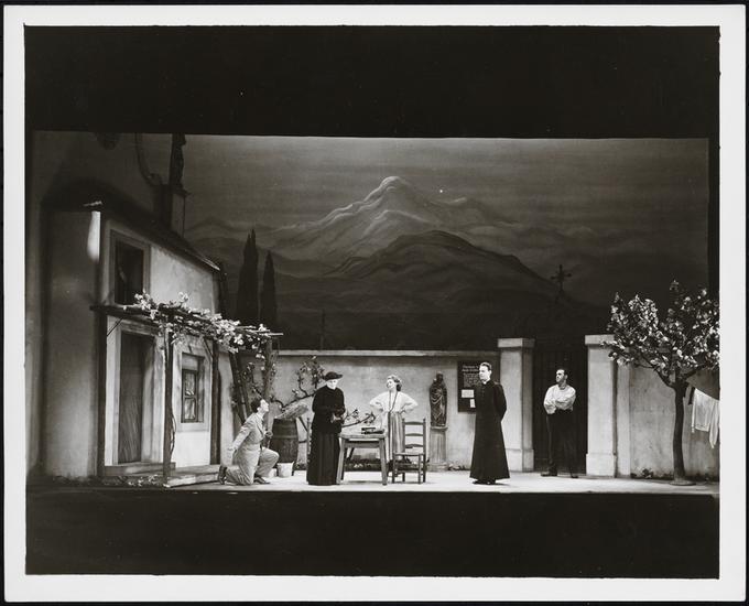 [Edward Kilcullen as Maestro di Camera, Ethel Barrymore as Teta, Martin Blaine as Pastor and Sheila Trent as Masha in "Embezzled Heaven".]