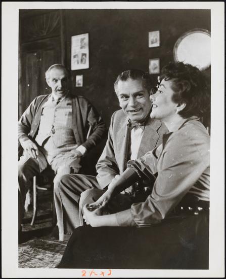 [Joan Plowright as Jean Rice, Laurence Olivier as Archie Rice and George Relph as Billy Rice in "The Entertainer".]