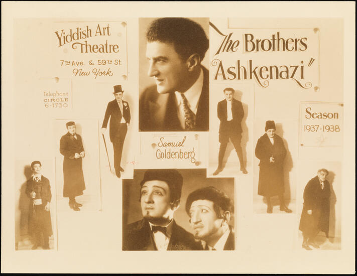 [Photomontage of cast and poster for "The Brothers Ashkenazi".]