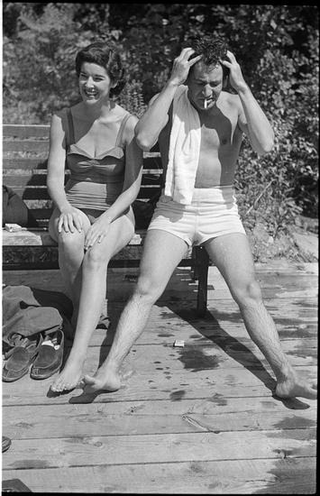 Leonard Bernstein [Leonard Bernstein and a woman wearing bathing suits.]