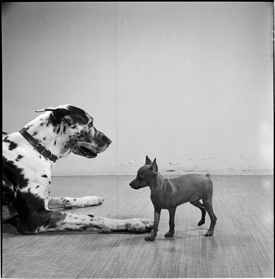 A Dog's Life in the Big City [Woman holding two small dogs.]