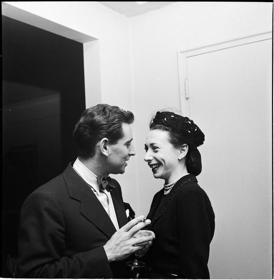 Leonard Bernstein [Leonard Bernstein talking to a woman at a party.]