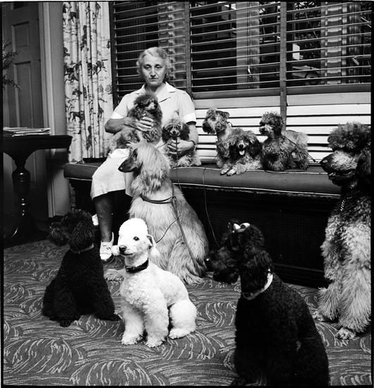 A Dog's Life in the Big City [Woman walking two poodles.]