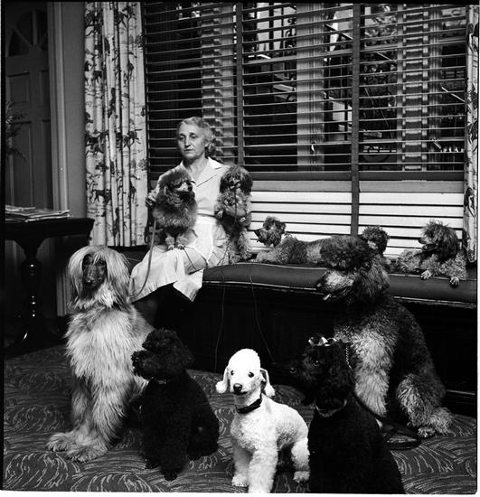 A Dog's Life in the Big City [Woman walking two poodles.]