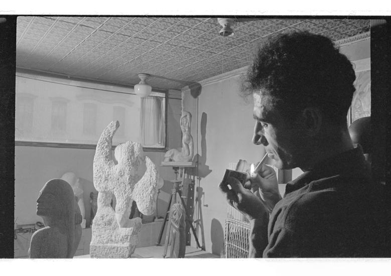 Pint-Size Sculptor with Big Ideas [Koren Der Harootian in his studio.]