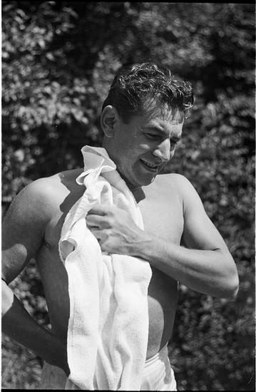 Leonard Bernstein [Leonard Bernstein drying off with a towel.]