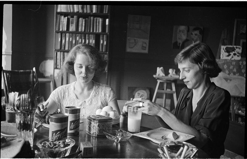 Leonard Bernstein [Women eating at a party as a man talks to her.]