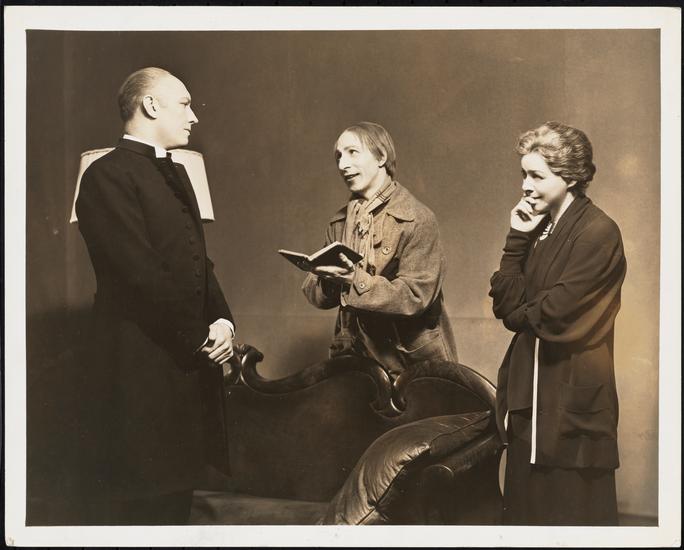 [McKay Morris as Pastor Manders, Ona Munson as Regina Engstrand and Alla Nazimova as Mrs. Helen Alving in "Ghosts".]