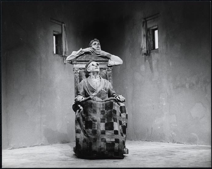 [Alvin Epstein as Hamm and Peter Evans as Clov in "Endgame".]