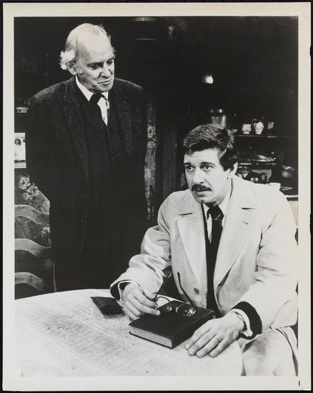 [Barnard Hughes as Father William Doherty and Fritz Weaver as Niles Harris in "Angels Fall".]
