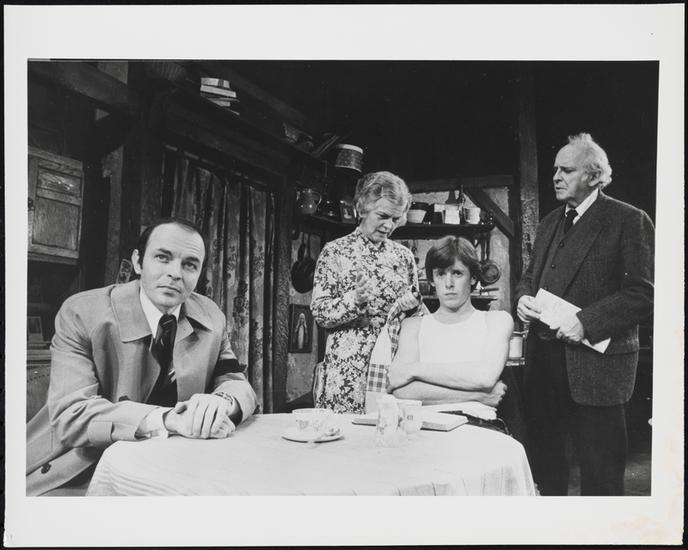 [Brian Murray as Charlie Now, an unidentified actor, Barnard Hughes as Da, and Sylvia O'Brien as Mother in "Da".]