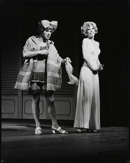 [Tony Roberts as Joe and Elaine Joyce as Sugar Kane in "Sugar".]