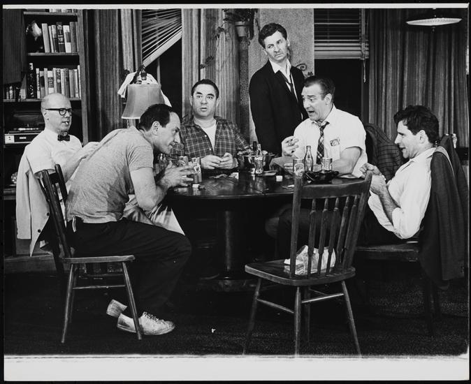[Mike Kellin as Oscar Madison and Eddie Bracken as Felix Ungar in "The Odd Couple".]