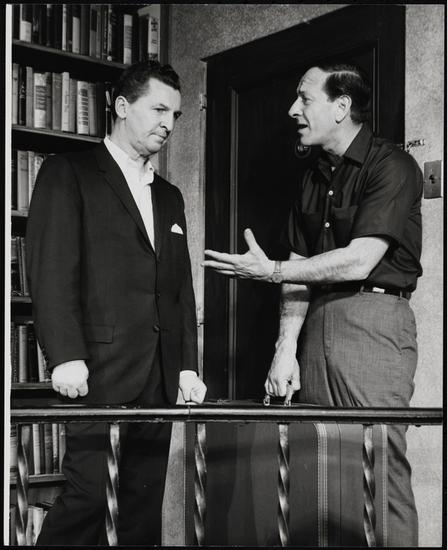 [Mike Kellin as Oscar Madison and Eddie Bracken as Felix Ungar in "The Odd Couple".]