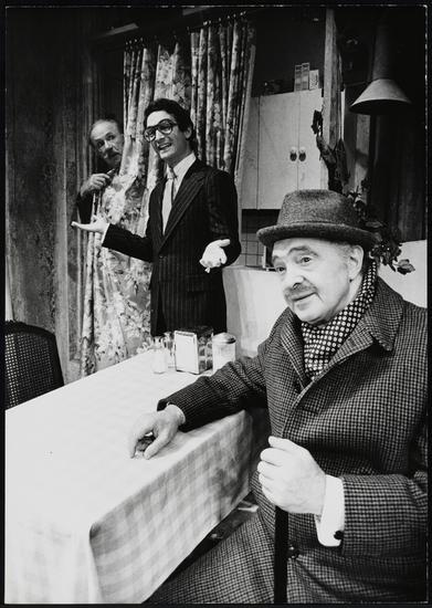 [John Batiste as Eddie and Jack Albertson as Willie Clark in "The Sunshine Boys".]