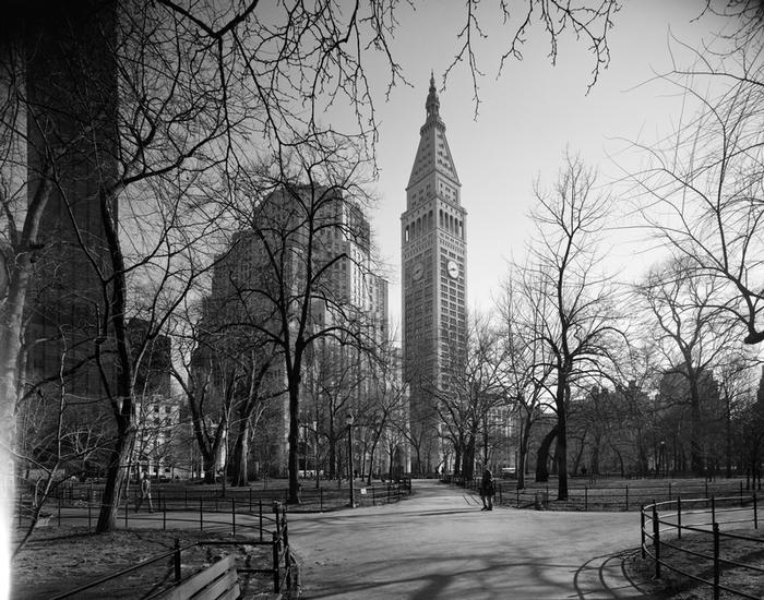 [Looking at the north building and clock tower of the Metropolitan Life Insurance Company from Madison Square Park.]