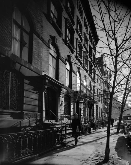 [Brownstones with stoops and cast iron railings in an unidentified location.]