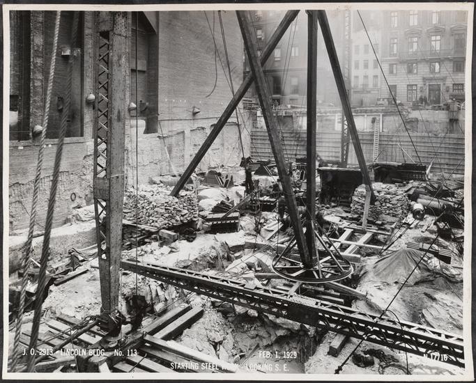 Starting Steel Work - Looking W. [Lincoln Building construction.]