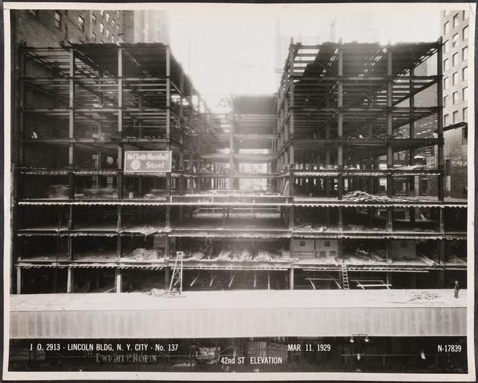 42nd St. Elevation, Looking S. [Lincoln Building construction.]