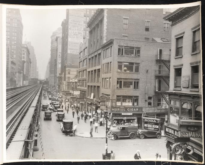 [West side of 6th Avenue looking north from the 23rd Street El station.]