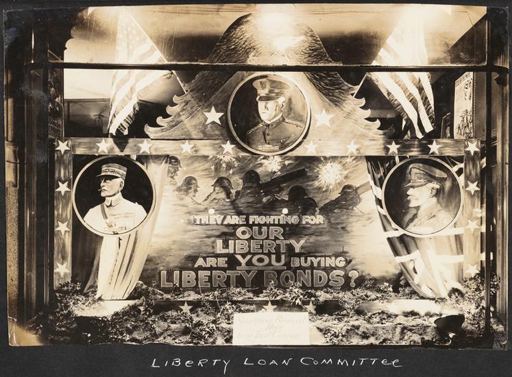 Street Scenes, etc. Showing Displays of Liberty Loan Posters during World War I [Liberty Loan window display.]