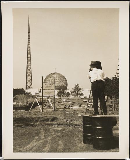 [Construction of the Trylon and Perisphere, New York World's Fair site.]