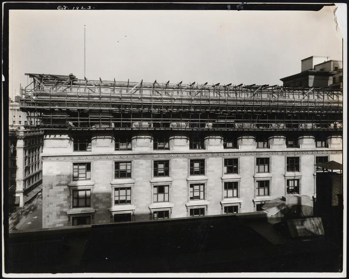 Woolworth Building, Upper Stories [at] Rear of 7 Barclay Street [Building near construction zone.]
