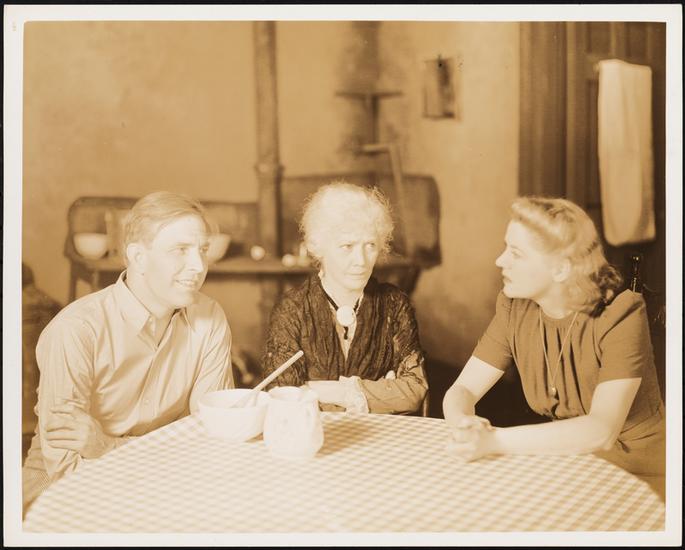 [Ben Smith as Pete Quigley, Gertrude Flynn as Edna Scott and Gladys George as Mom Quigley in "The Distant City".]