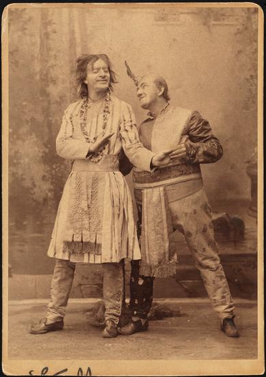 [DeWolf Hopper as Howja-Dhu and Annie Meyers as Damayanti in "The Begum".]