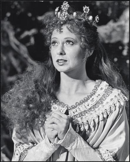 [Meg Bussert as Guenevere and Richard Harris as Arthur in "Camelot".]