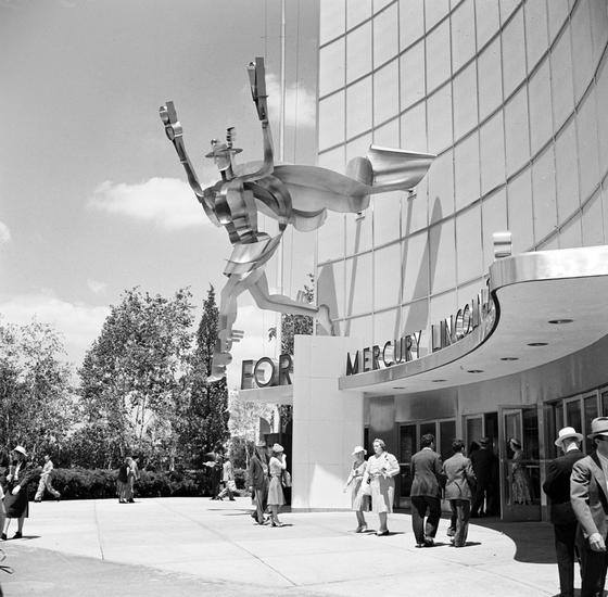 [New York World's Fair. Ford Building, metal "Mercury" sculpture.]