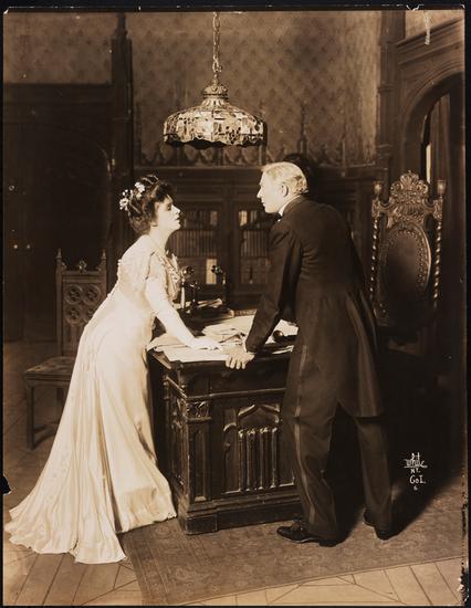 [Grace Elliston as Shirley Rossmore and Edmund Breese as John Burkett Ryder in "The Lion and the Mouse".]