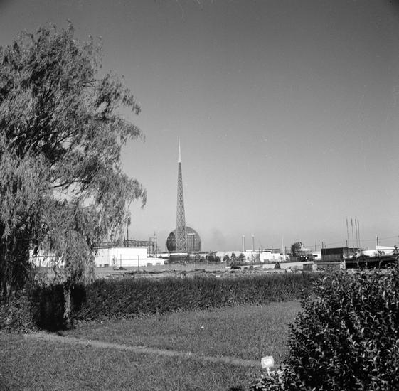 [Site of the New York World's Fair, showing the frames of the Trylon and Perisphere.]