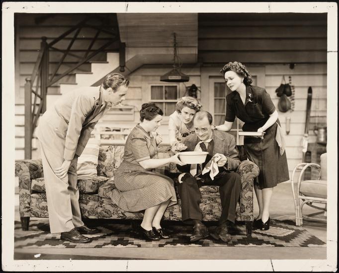 [Jessie Royce Landis as Janet Archer, Robert Keith as Harry Archer and Joan Caulfield as Corliss Archer in "Kiss and Tell".]
