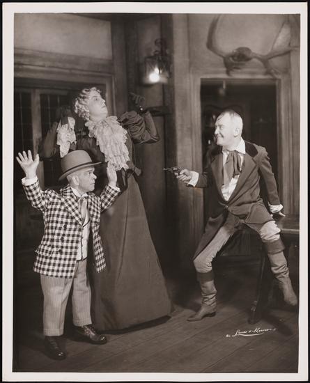 [George Thornton as a Little Stranger, Dona McClelland as a Stranger and George M. Cohan as the Vagabond in "The Return of the Vagabond".]