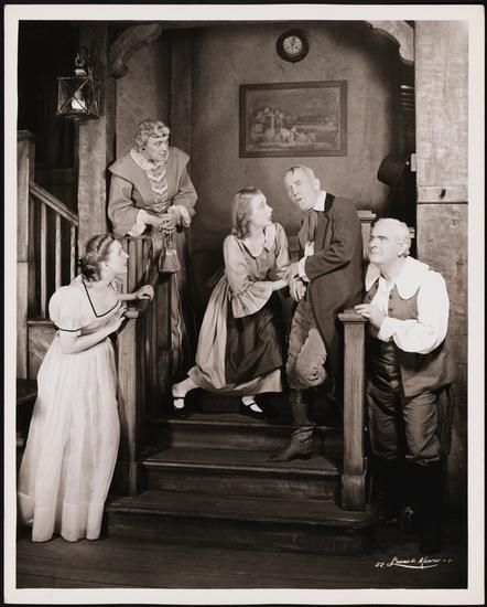 [Celeste Holm as his Daughter and George M. Cohan as the Vagabond in "The Return of the Vagabond".]
