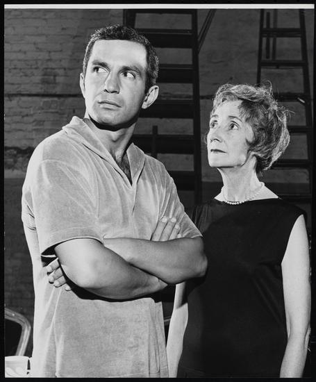 [Mildred Dunnock and Ben Gazzara in rehearsal for "Traveller Without Luggage".]