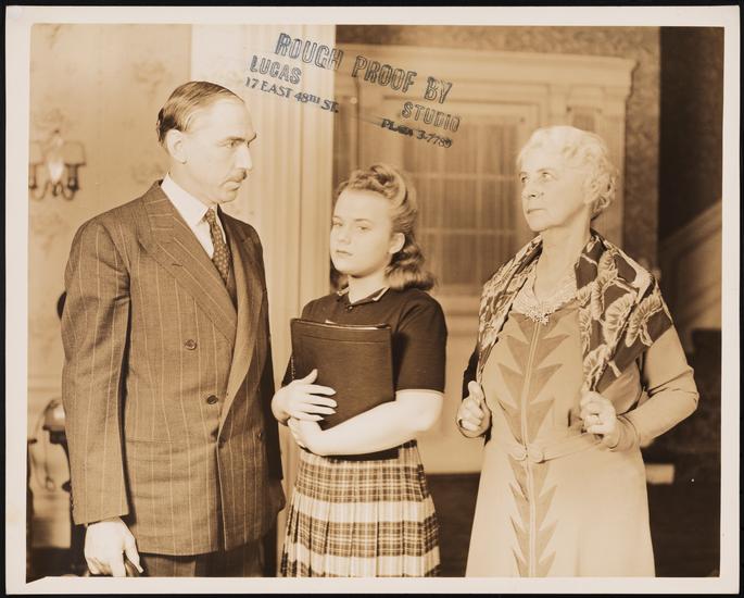 [Barbara Beals as Rosalie Wells, Florence McGee as Mary Tilford, and Katherine Emmett as Mrs. Amelia Tilford in "The Children's Hour".]