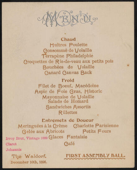 [The pleasure of Miss Eleanor Hewitt's company is requested at the First Assembly.]
