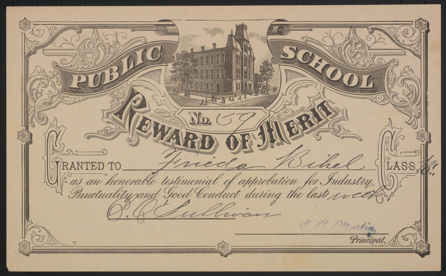 [Testimonial to punctuality, deportment and diligent attention to study.]