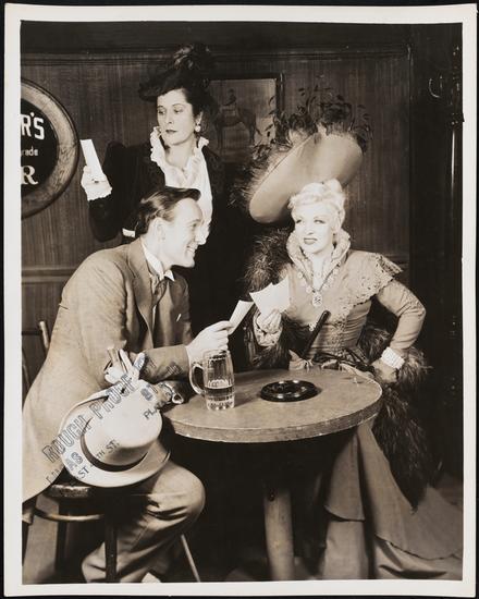 [Mae West as Diamond Lil, Charles G. Martin as Flynn and Miriam Goldina as Rita in "Diamond Lil".]
