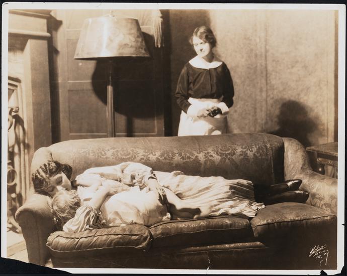 [Clara Blandick as Dolores Pennington and May Irwin as Gloria Grey in "Widow by Proxy".]